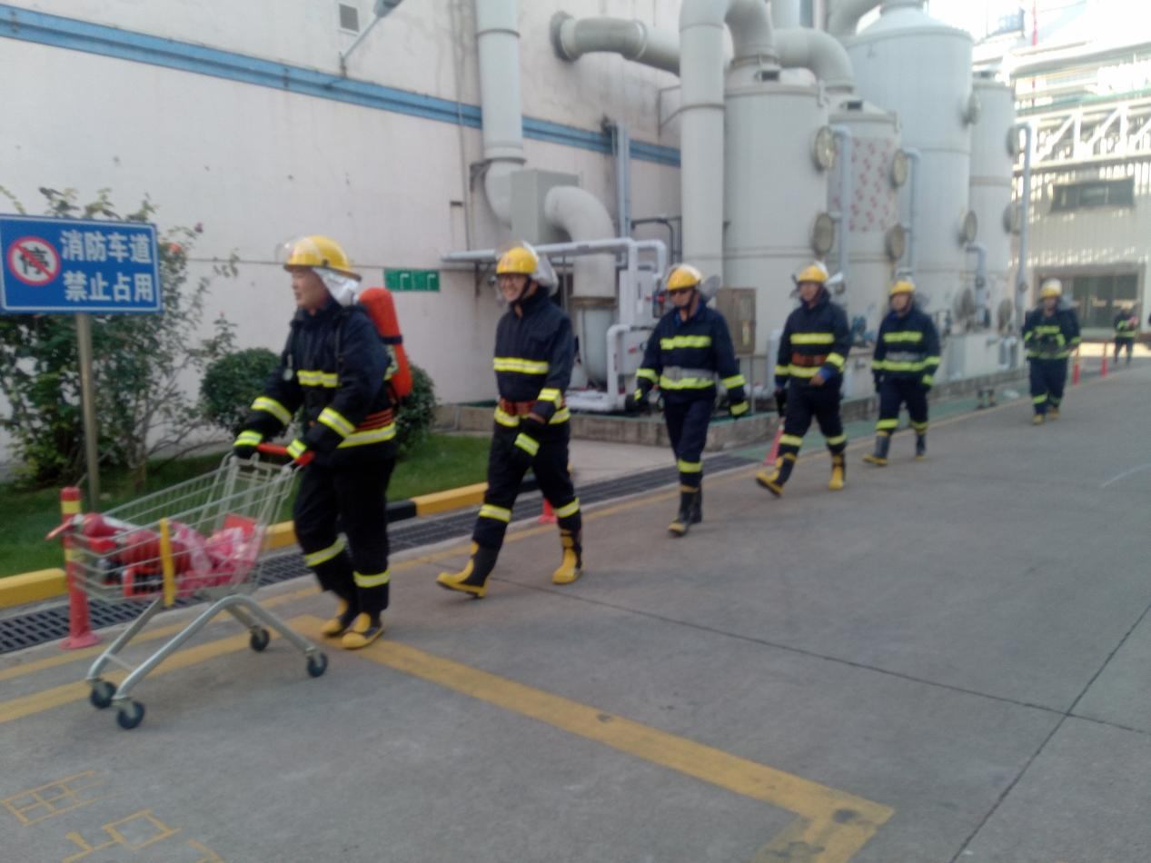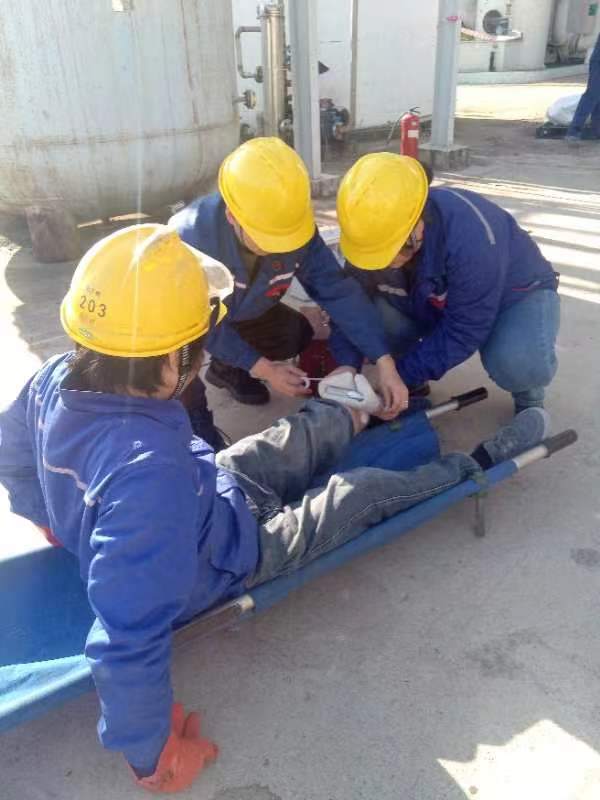 2025 年“全民消防,生命至上-安全用火用電”為主題的消防安全月,安全生產管理科于2025年11月25日下午,在酒石酸雙氧水罐區(qū)組織進行一次消防應急疏散演練。演練內容為: 雙氧水罐區(qū)儲槽(南V1101A)因九級大風天氣吹落管架線槽不銹鋼蓋板,落到底部軟連接處,致使不銹鋼軟管破損,導致雙氧水泄漏,造成雙氧水流淌,流至低位槽溢出,積熱引燃周邊堆場雜物,應急處置過程中造成一員工腳踝部灼燙傷。 在現場總指揮的指揮下,演練工作緊張有序開展, 提高公司員工的風險防范意識,加強員工在面對突發(fā)災害時的防災滅火基本技能,和應對環(huán)境事件的處置能力,驗證了公司應急預案的可行性,檢驗了應急器材的可用性,進一步提高公司應急處置能力,筑牢公司安全生產防線。